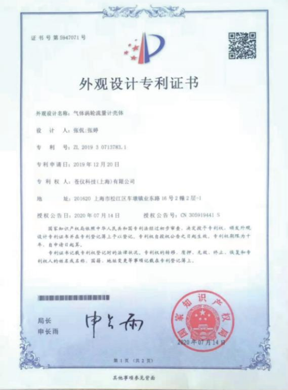 外观设计专利证书